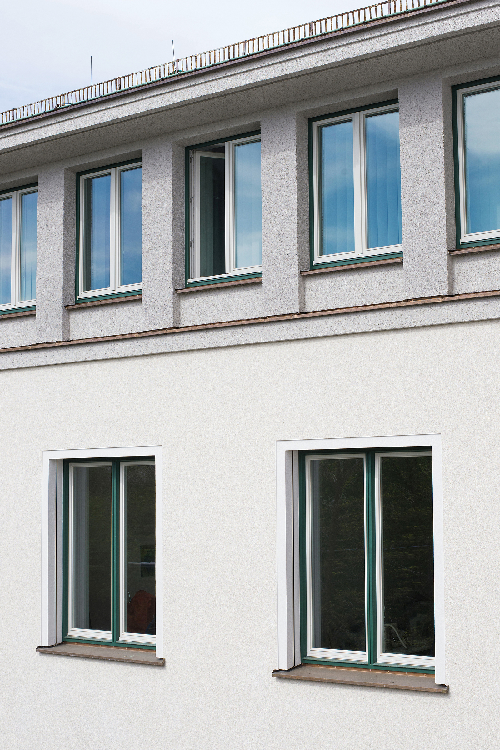 Ziel der Baumaßnahme war die energetische Sanierung des bestehenden Gebäudes, welche dessen prägende Bestandteile und Qualitäten berücksichtigen sollte. Die durch die Analyse herausgearbeiteten wesentlichen ursprünglichen Entwurfsgedanken wurden daher wieder aufgenommen und neu interpretiert. Weiteres besonderes Augenmerk lag auf dem Einsatz nachhaltiger und recyclingfähiger Materialien.